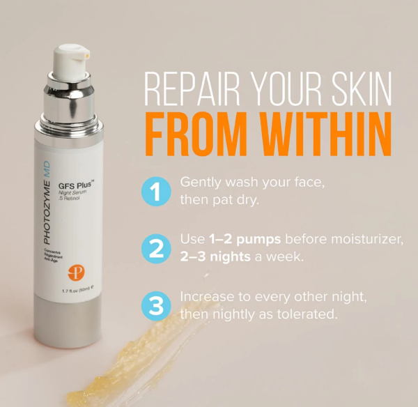 A true age reversal product designed to treat serious aging signs with the most advanced retinoid (GDR), collagen stimulant (LPA), DNA repair enzymes and peptide complex. This new advanced treatment contains the most active retinoid on the market that allows superior performance with little to no irritation, making it available for all skin types. The GFS is a powerful product that is also packed with vitamin C derivatives (Ascorbyl esters, SAP) which are beneficial against aggressive oxidizing agents and free radicals in the skin. It boosts the epidermal layer of the skin by promoting cell production, making the skin look rejuvenated and even-toned. This product also stimulates the skin’s daily repair via DNA repair enzymes.